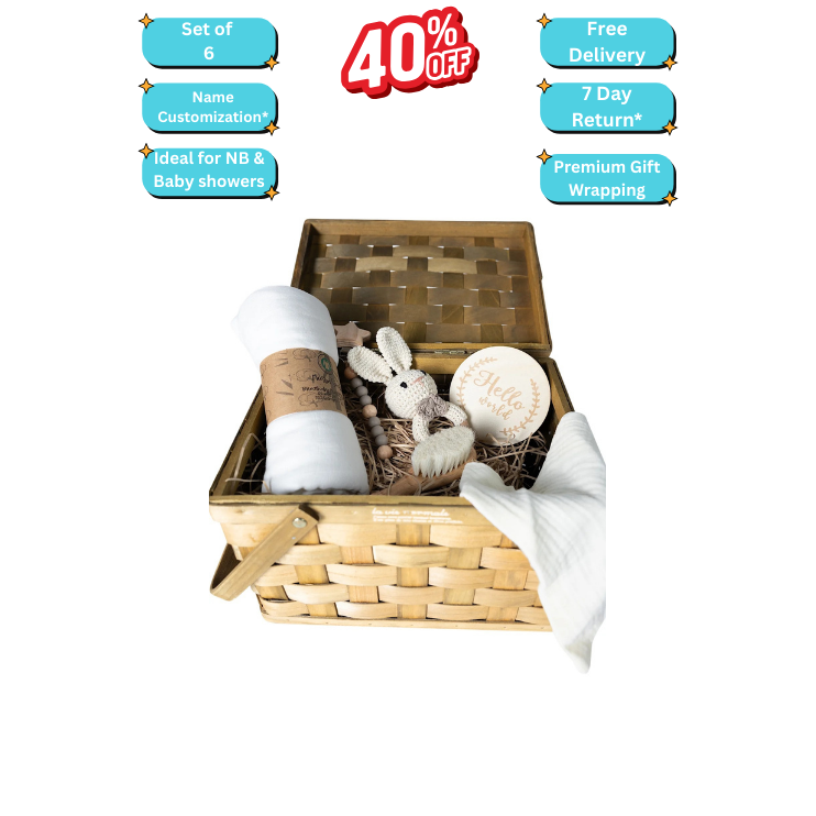 This thoughtfully curated 6-piece gift set is ideal for new parents, perfect for baby showers or welcoming a newborn.